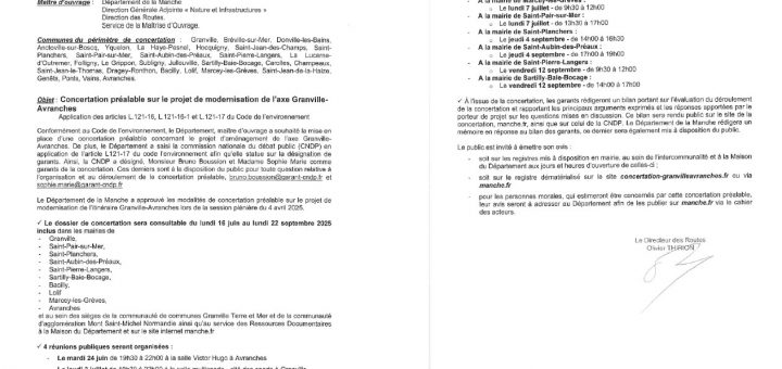 Des compteurs de sectorisation seront installés du 23 juin au 3 juillet sur les communes de Saint-Planchers, Saint-Aubin-des-Préaux, Saint-Michel-des-Loups, Angey, Champeaux et Saint Pierre Langers. Ces interventions entraîneront une interruption de l’alimentation en eau...