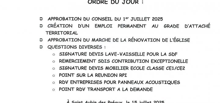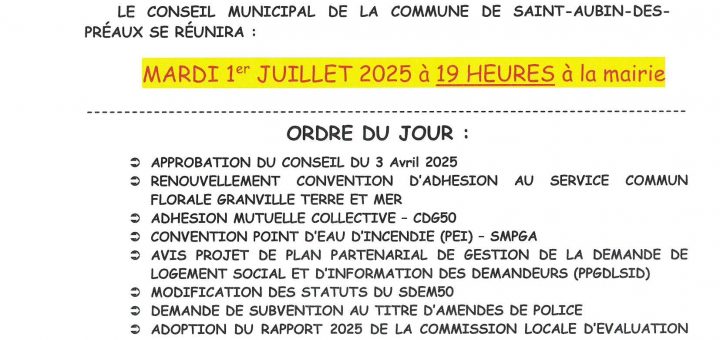Commune de SAINT AUBIN DES PREAUX Le Service des Eaux vous informe que la relève des compteurs d’eau potable débutera le : Lundi 23 juin 2025 et non le Mercredi 2 juillet 2025 Pour...
